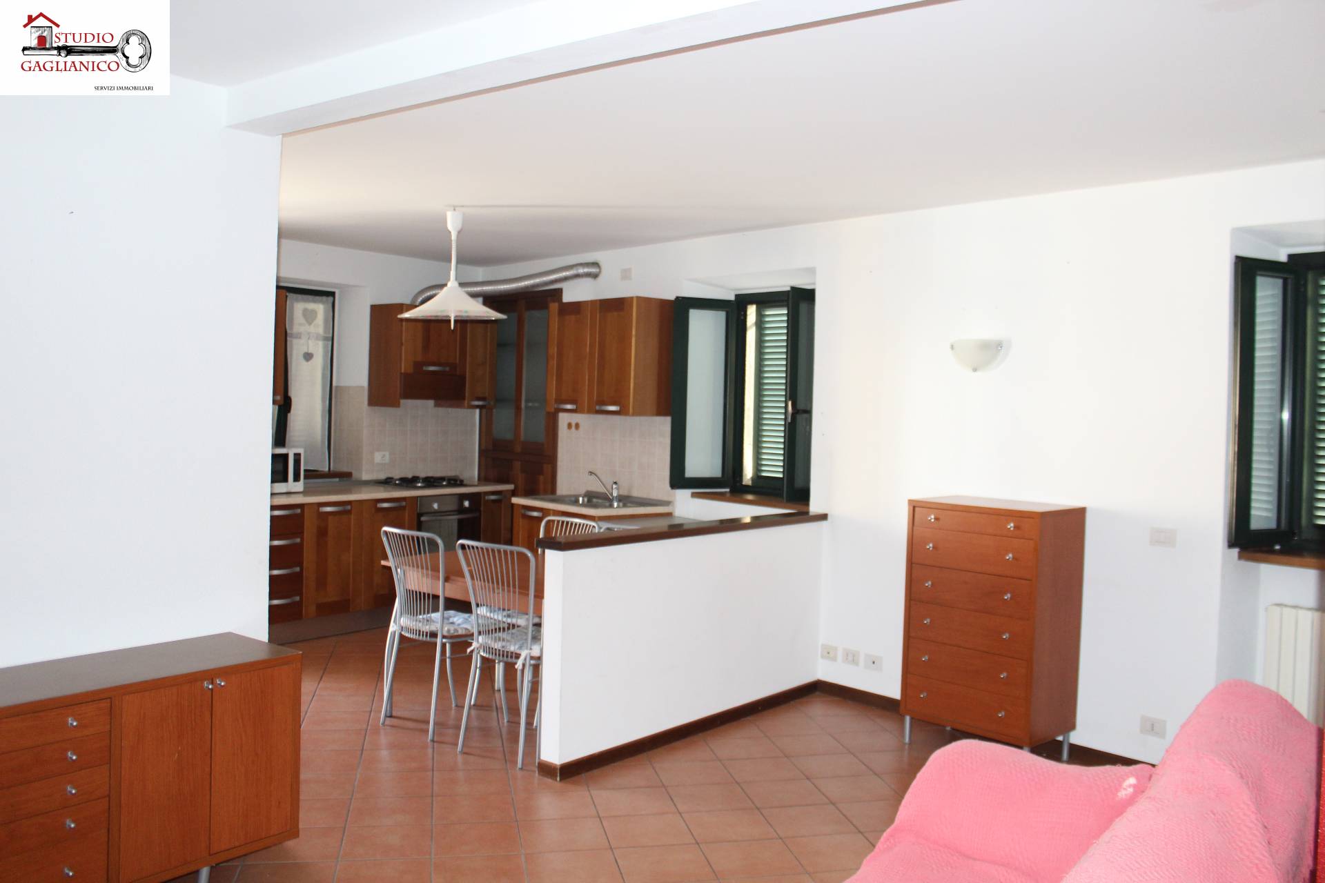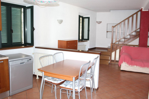 In centro paese, alloggio su due livelli completamente ristrutturato ed arredato in stile moderno. Composto da soggiorno e cucina a vista e bagno con vasca al primo piano; un'ampia camera da letto matrimoniale e bagno con doccia al piano mansardato. Riscaldamento autonomo a metano con caldaia sostituita recentemente; infissi esterni con doppi vetri e nessuna spesa condominiale. Arredamento completo di elettrodomestici e lavatrice.