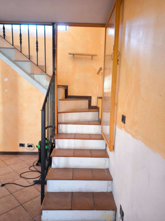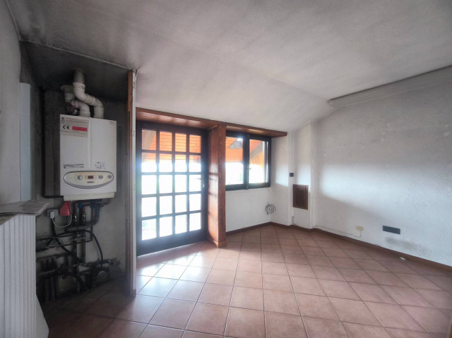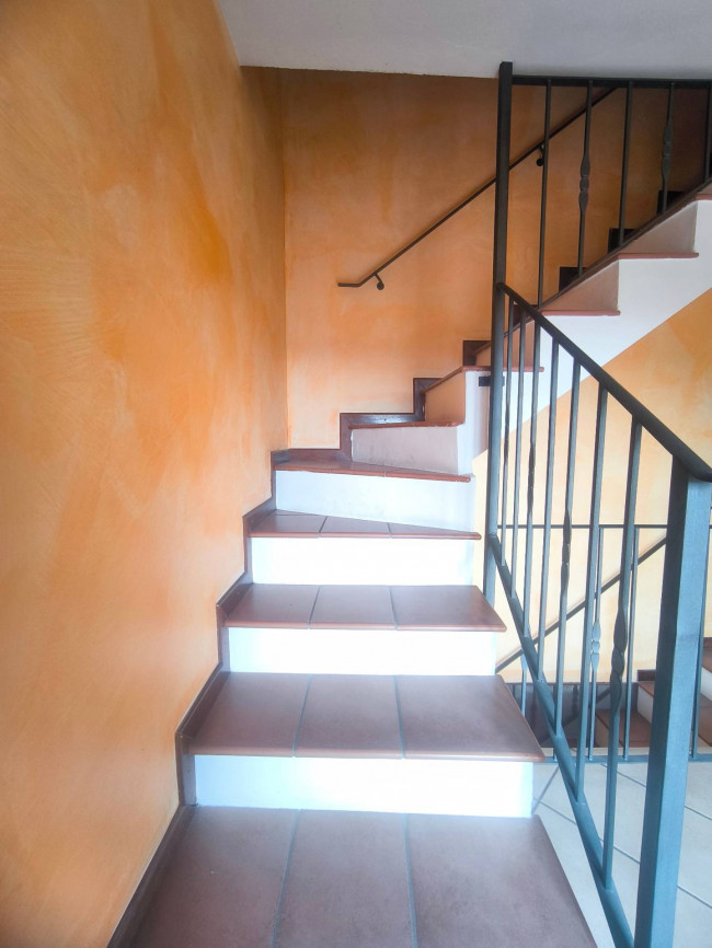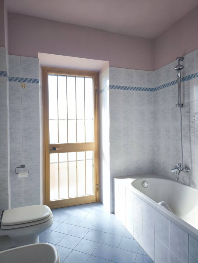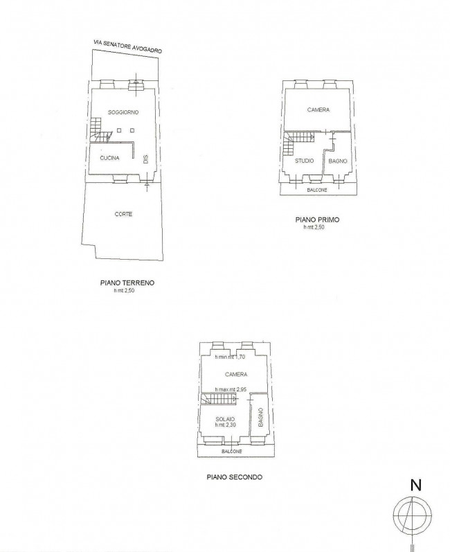 In zona centrale e comoda a tutti i servizi, abitazione su due livelli oltre al piano sottotetto, in parte civilizzato. Piano terreno con ingresso dalla Via Avogadro direttamente in soggiorno con cucina a vista e accesso al terrazzo che affaccia sul cortile interno. Piano primo con ampio disimpegno, camera da letto matrimoniale, bagno con vasca e balcone; piano secondo con un'altra camera da letto, un bagno con doccia, un secondo balcone e una porzione di solaio. Riscaldamento autonomo con caldaia a condensazione e infissi esterni con doppi vetri. Completa la proprietà un'autorimessa di 40 metri quadri con annesso locale cantina/deposito e una porzione di terreno adibita ad orto.