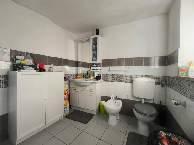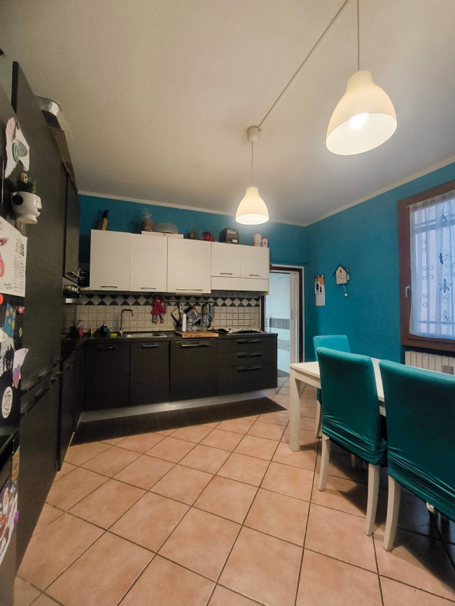 Situata in zona centrale, casa di corte inizio-schiera, disposta su due livelli abitativi. Zona giorno al piano terreno con ingresso living in soggiorno di 30 metri quadri, cucina abitabile, bagno/lavanderia e locali cantina e deposito. Zona notte al piano superiore, dotata di impianto di climatizzazione, con due camere da letto matrimoniali, bagno con doccia e tre balconi. Riscaldamento autonomo con caldaia a metano a condensazione e stufa a pellet; infissi esterni in PVC con vetrocamera. Completa la proprietà una porzione di terreno di circa 50 metri quadri, recintata.