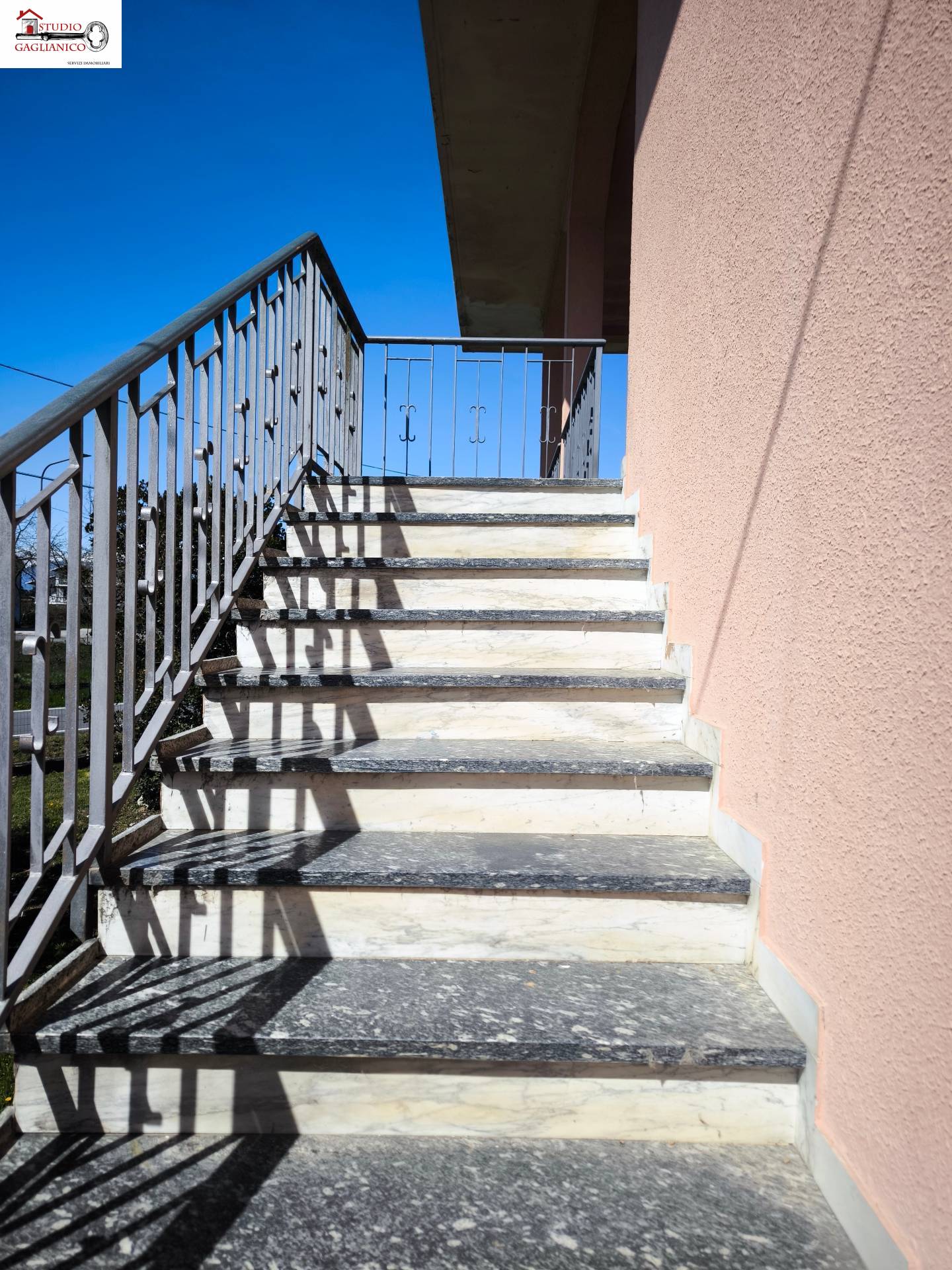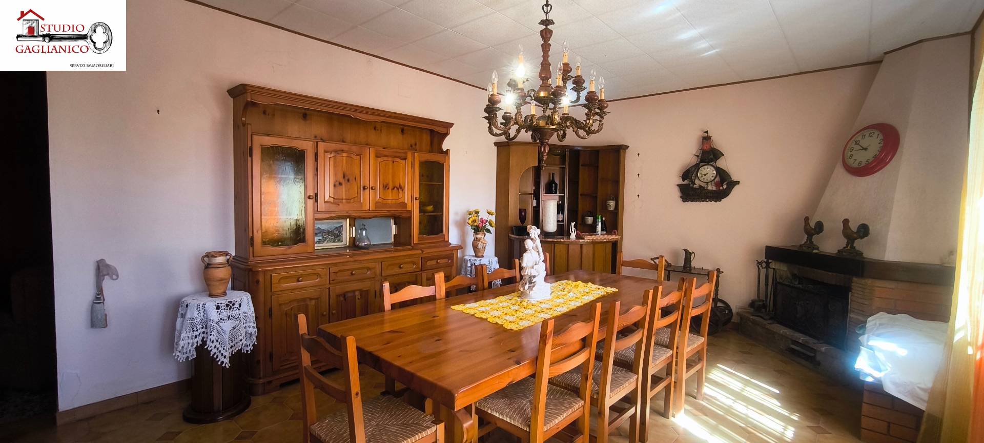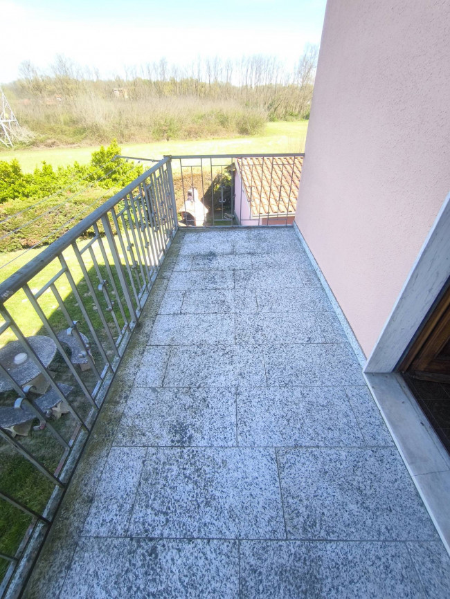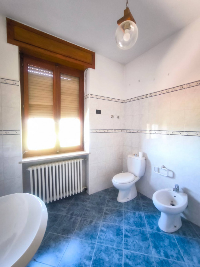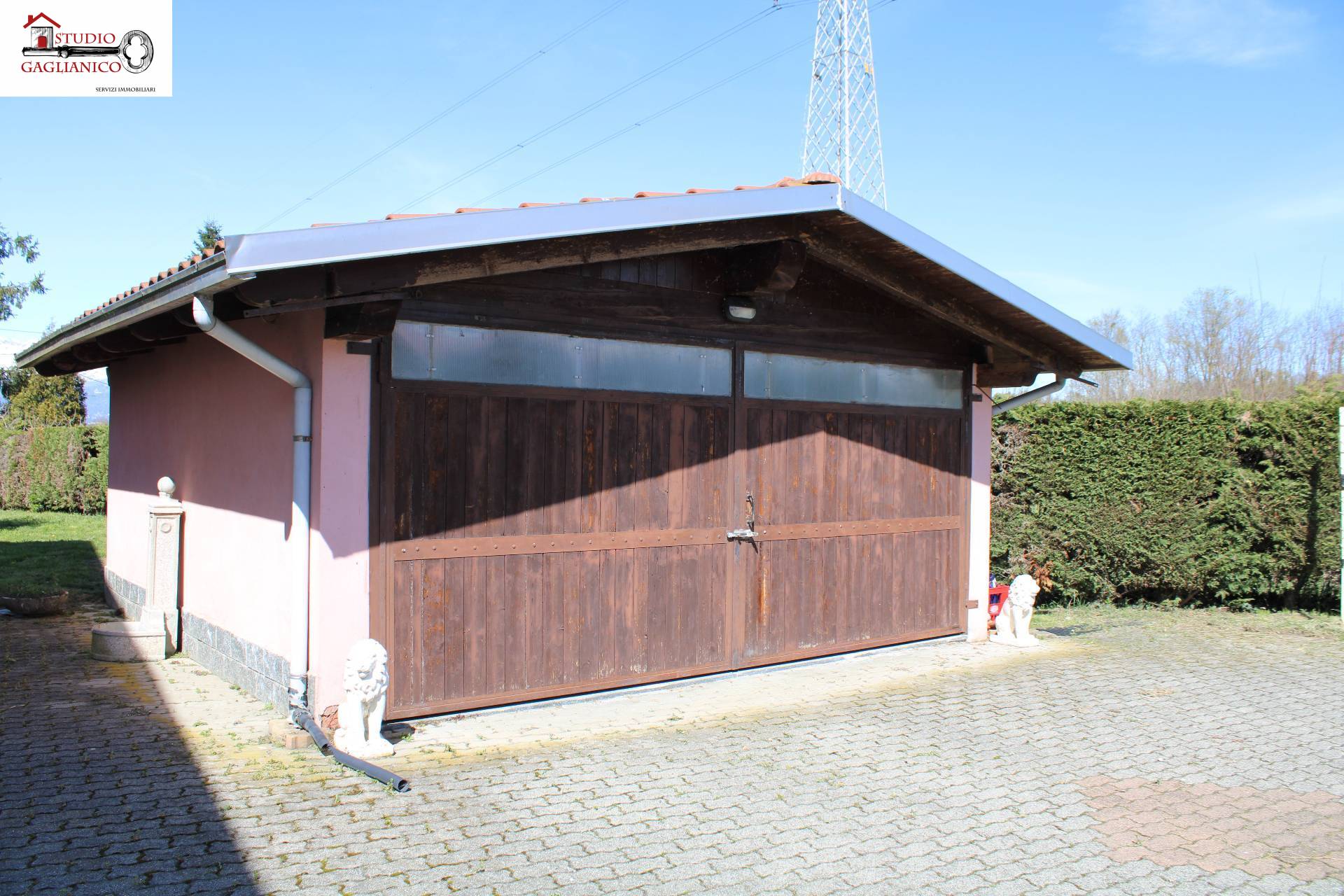Casa indipendente bifamiliare composta da due appartamenti, uno al piano terreno e uno al piano primo, ciascuno con ingresso autonomo. L'alloggio al piano terra è composto da un ampio ingresso, soggiorno doppio con camino, cucina abitabile, tre camere da letto, bagno padronale, sia con vasca che doccia e secondo bagno di servizio. Al piano primo abbiamo il secondo alloggio con accesso dalla terrazza, soggiorno con camino, cucina abitabile, due camere, bagno con doccia e balconi che servono sia la zona giorno che la zona notte. L'immobile si presente in buono stato d'uso, con i bagni ristrutturati recentemente e gli infissi esterni in legno con doppi vetri. Riscaldamento con due caldaie a metano, una per ciascun appartamento. Giardino di circa 2.000 metri quadri, recintato e con accesso da cancello automatizzato, e due bassi fabbricati a corredo, uno di 250 metri quadri uso deposito/magazzino e l'atro di 25 metri quadri uso autorimessa.