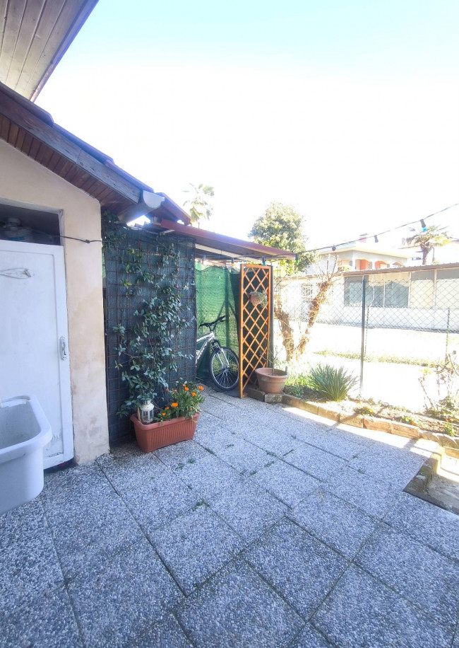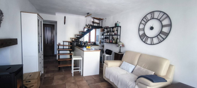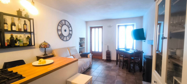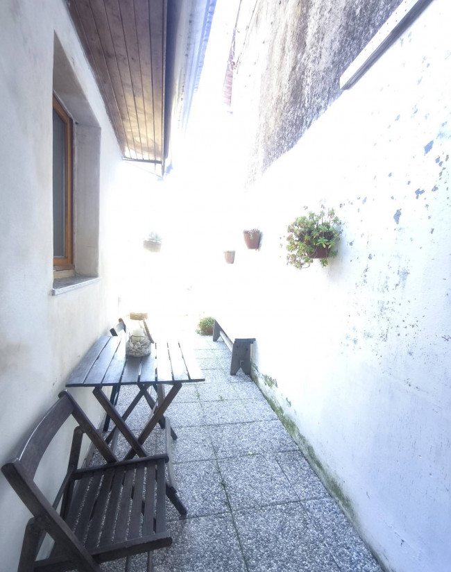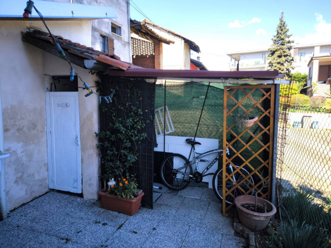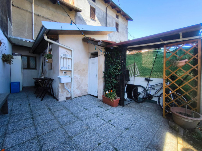 In centro paese, comodo a tutti i servizi e a due passi dal Centro Commerciale "Gli Orsi", casa centro-schiera su due livelli abitativi, completamente ristrutturata, impiantistica idraulica ed elettrica comprese. Piano terreno con ingresso living in soggiorno con cucina a vista, disimpegno e bagno con doccia; piano primo con camera da letto matrimoniale con balcone e locale ripostiglio/lavanderia. Riscaldamento autonomo con caldaia a metano a condensazione e stufa a pellet; infissi esterni in legno con doppi vetri. Completano la proprietà, sul retro della casa, una porzione di cortile recintato e chiuso da cancello, con gazebo e locale ripostiglio e un posto auto scoperto fronte casa.