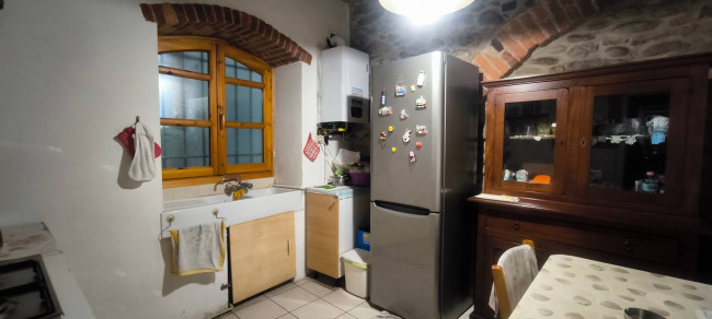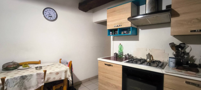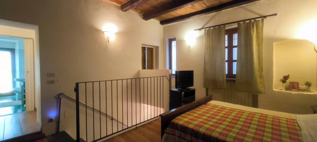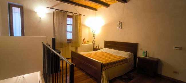 Nel centro storico del paese, all'interno di una corte seicentesca a due passi dalla Chiesa di San Sulpizio, casa semi-indipendente su due livelli, oltre al piano sottotetto in parte già civilizzato. Composta al piano terreno da ampio ingresso con caminetto, soggiorno/sala da pranzo e cucina abitabile con caratteristico soffitto con volte a botte in mattoni rossi e travi in legno; primo piano con due camere da letto, disinpegno, bagno con doccia e balcone che termina con un terrazzino, ideale per passare le sere d'estate con amici e parenti. L'mmobile si presenta in ottimo stato d'uso essendo stato completamente ristrutturato circa una ventina di anni fa, dall'impiantistica idraulica ed elettrica, agli infissi esterni con doppi vetri, al tetto fino al vespaio ventilato con igloo per evitare la risalita di umidità. Riscaldamento autonomo con caldaia a metano a condensazione sostituita recentemente. Completano la proprietà una porzione di area esterna pavimentata fronte casa e un basso fabbricato, ideale come tavernetta, anchh'esso con volte a botte e dotato di acqua e corrente elettrica.